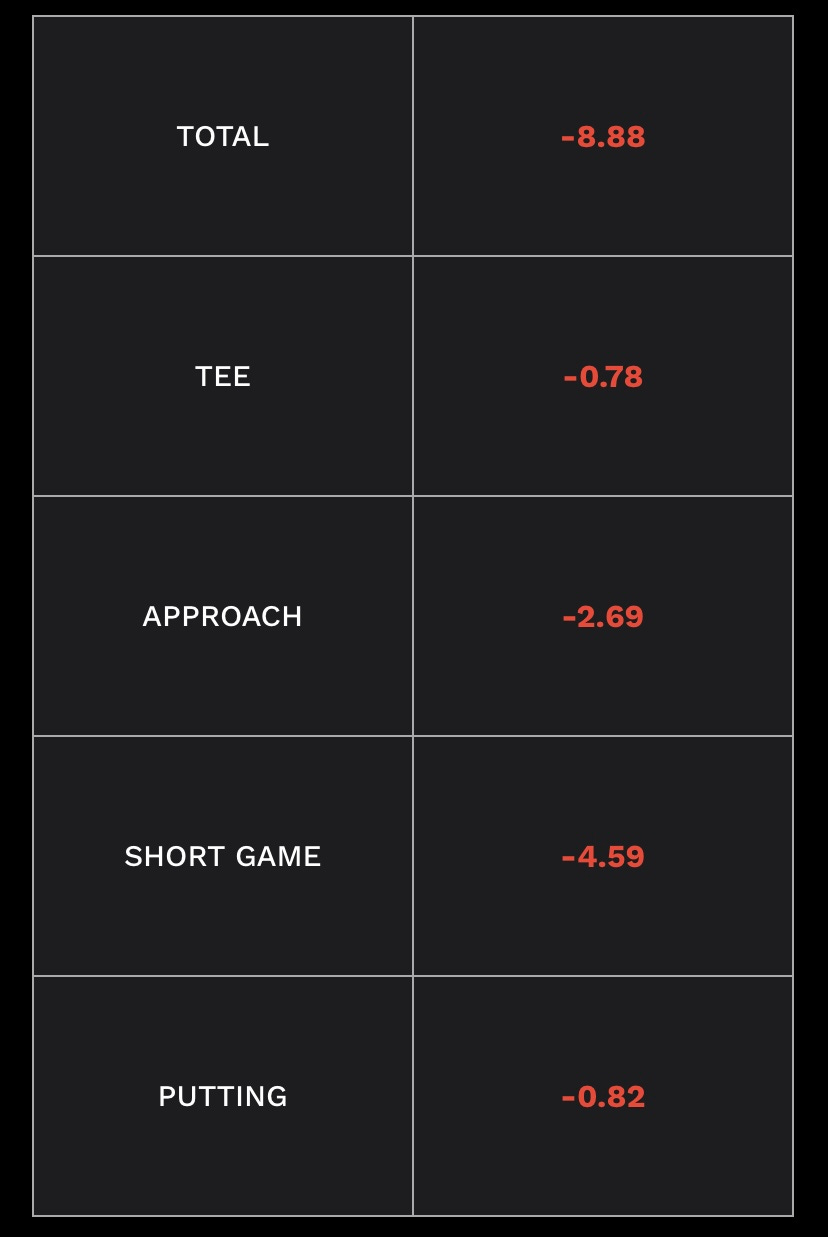 Strokes Gained Summary (not compared to the field, but to how a touring pro would play the course) from the round below … please do not look if you have a history of poor-golf induced nausea: